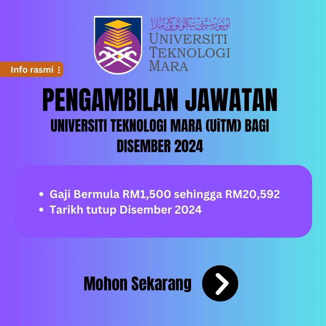 Pengambilan Besar-Besaran Jawatan Di UiTM Bagi Disember 2024: Gaji Bermula RM1,500 Hingga RM20,592.00