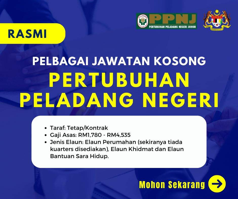 Pertubuhan Peladang Negeri Johor (PPNJ) kini sedang membuka pengambilan pelbagai kekosongan jawatan terkini untuk diisi oleh mereka yang berminat dan berkelayakan.