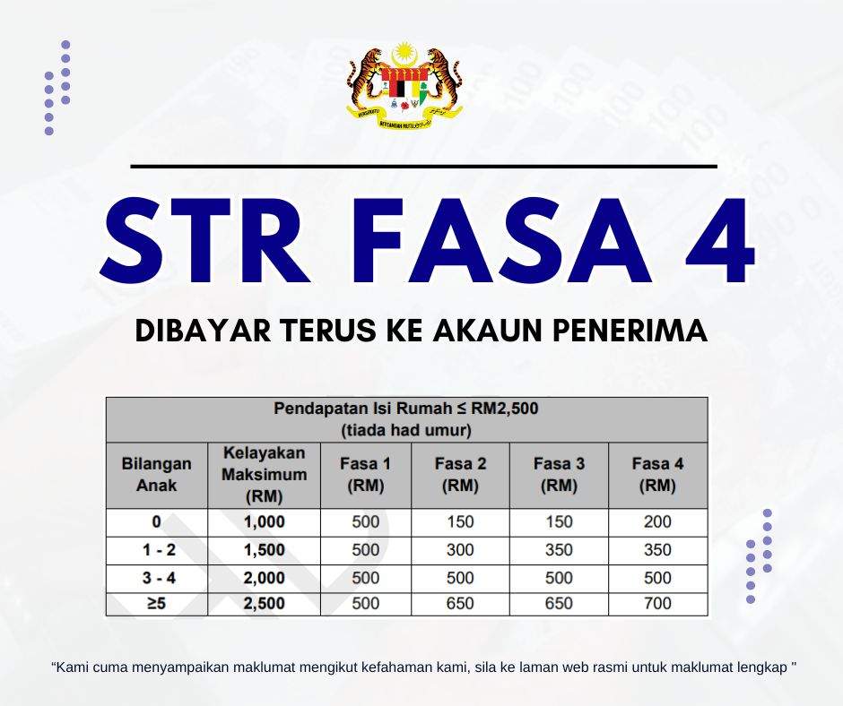 Manakala, bagi STR Fasa 4 pula, jumlah pembayarannya adalah seperti berikut: