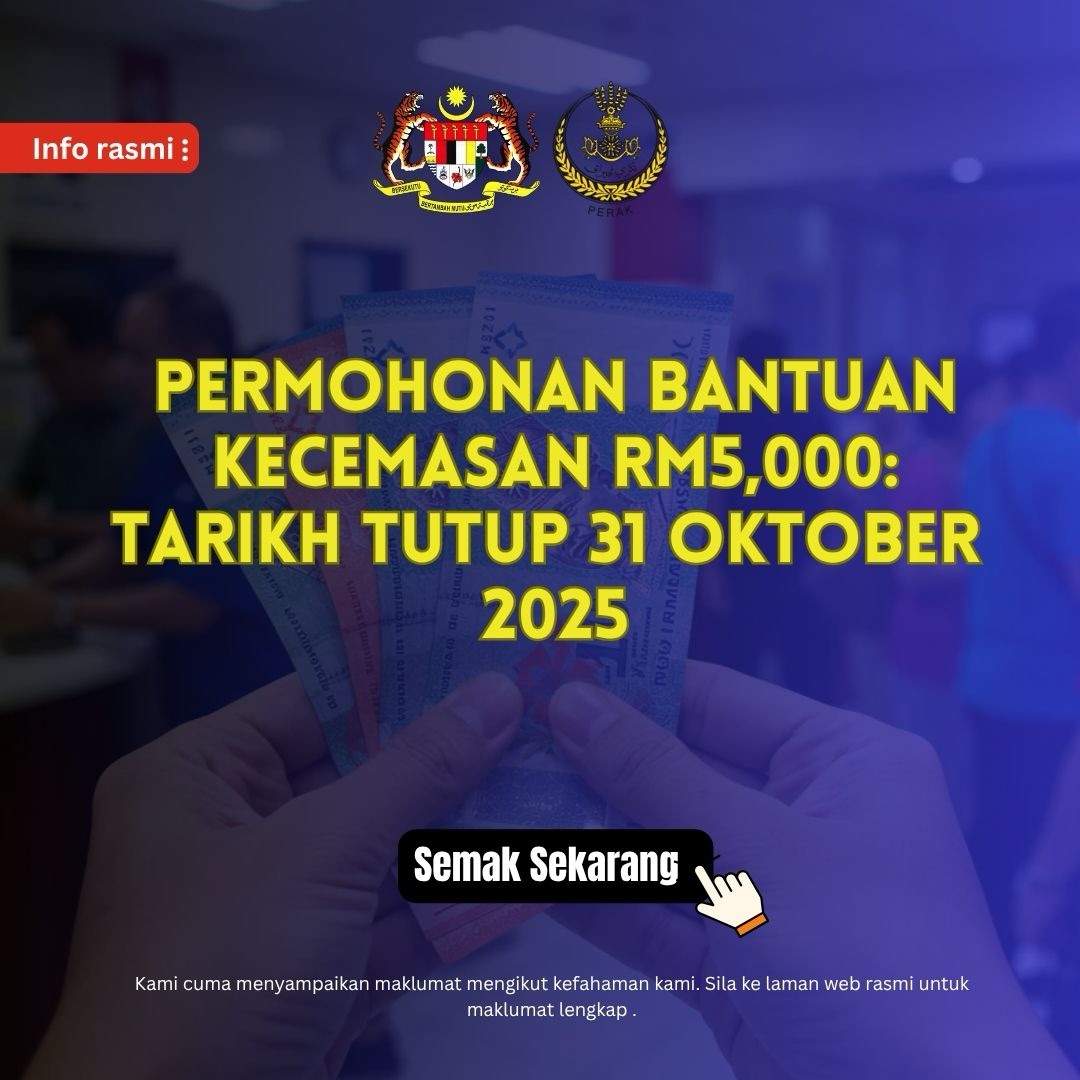 Permohonan Bantuan Kecemasan Sehingga RM5,000 Ditutup Pada 31 Oktober 2025 Ini. Berikut Cara Memohon