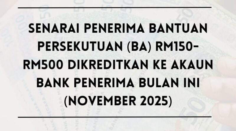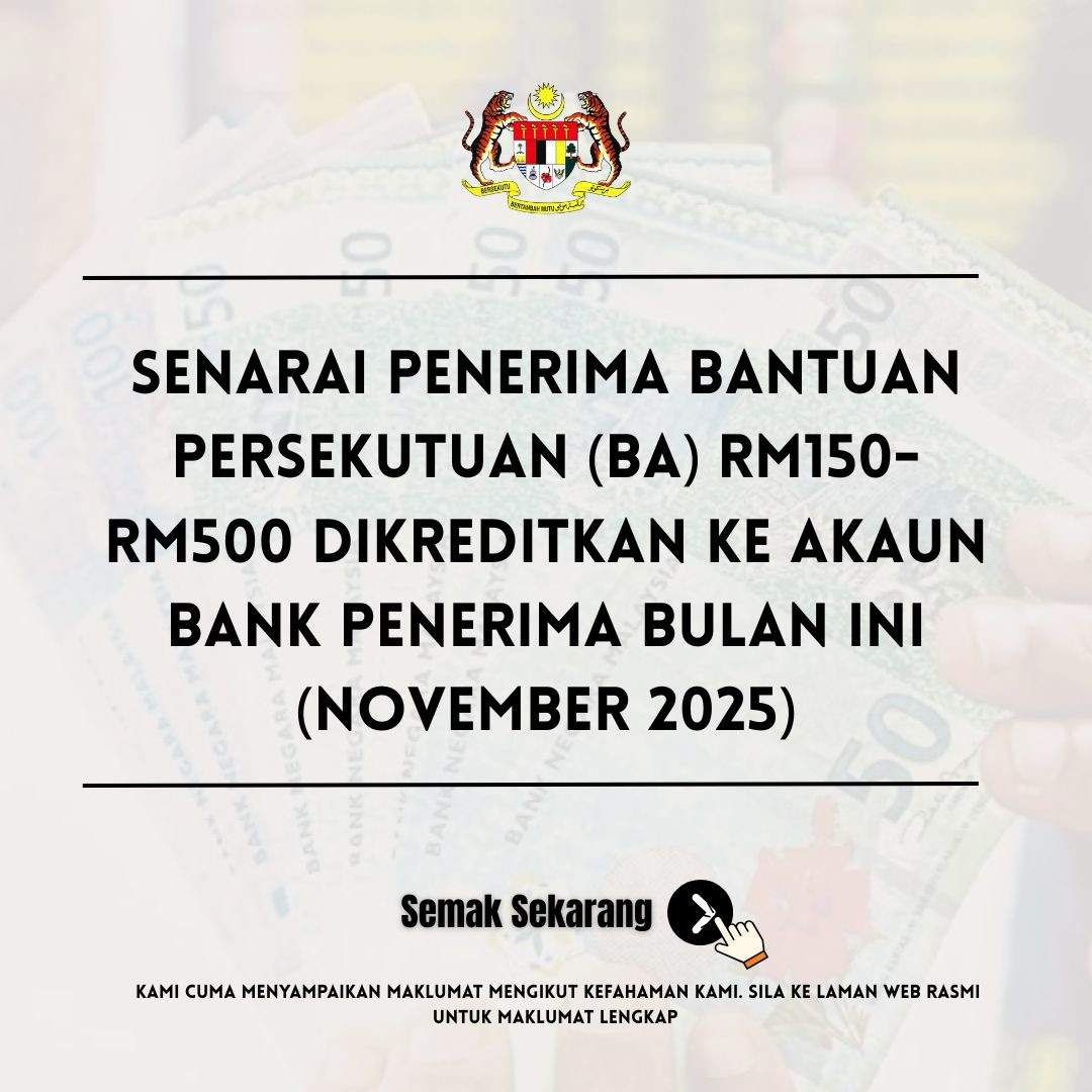 Senarai Penerima Bantuan Persekutuan (BA) RM150-RM500 Dikreditkan Ke Akaun Bank Penerima Bulan Ini (November 2025)