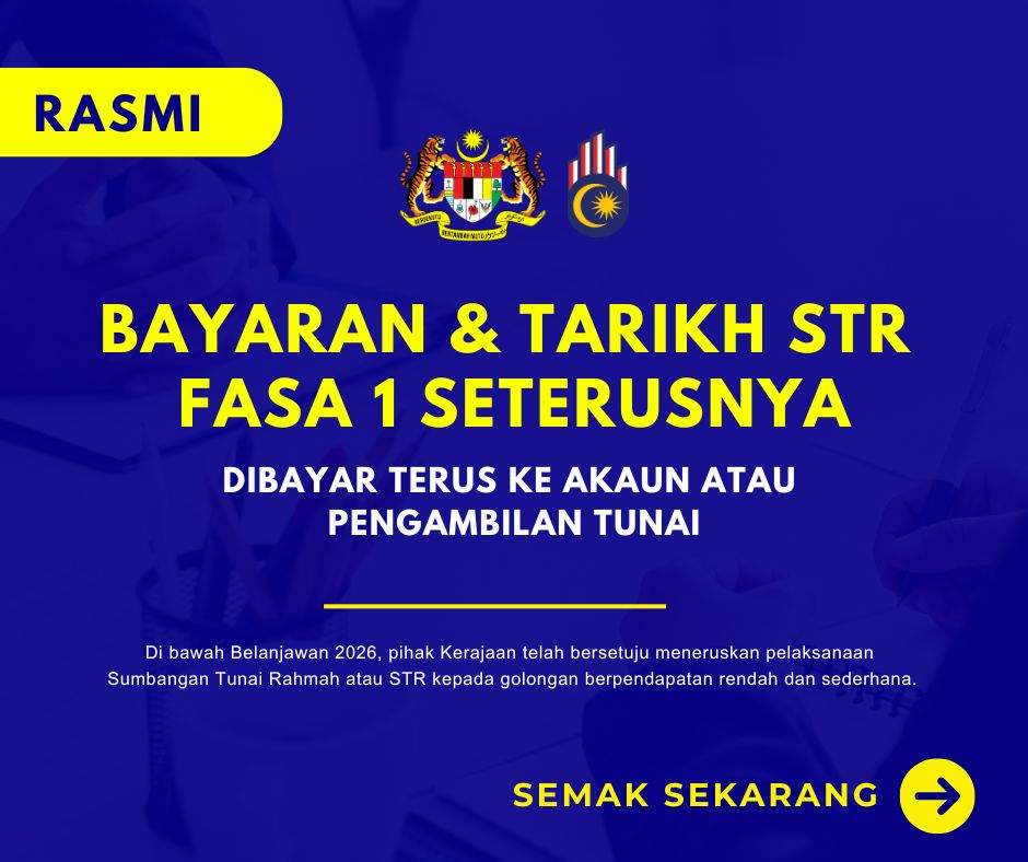 Untuk maklumat lanjut dan terperinci berkenaan STR 2026, sila rujuk di Portal Rasmi STR – DI SINI.