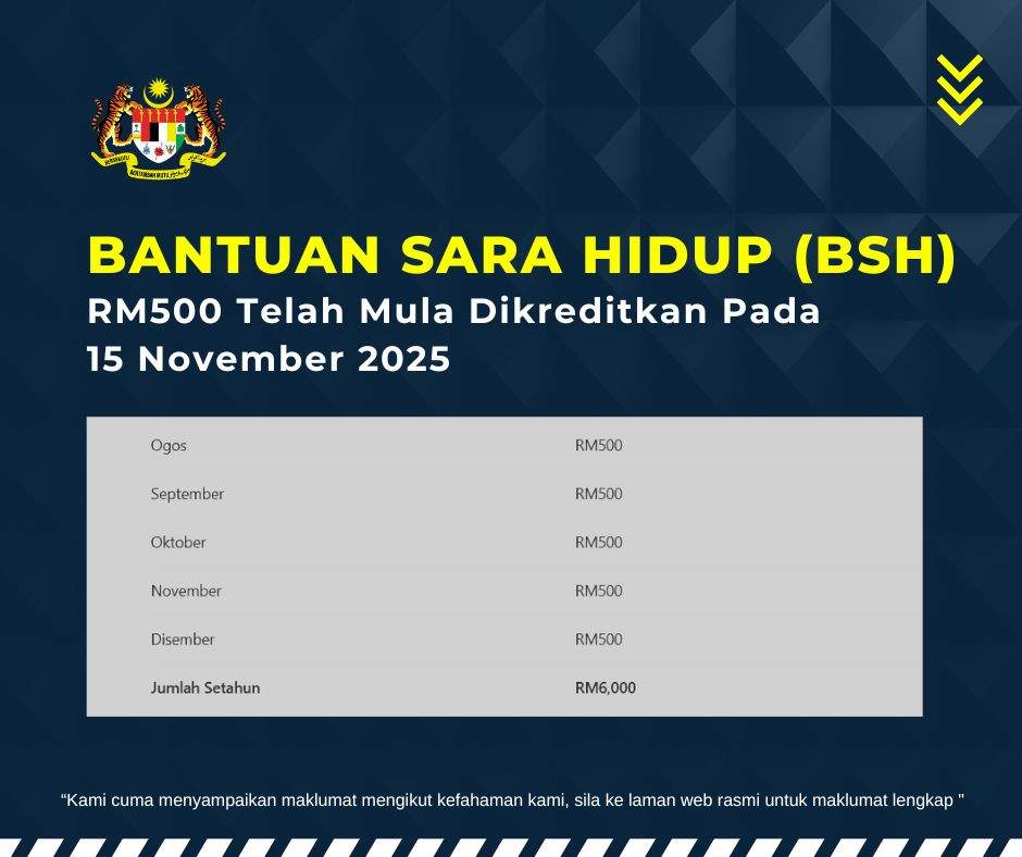 RM500 Telah Mula Dikreditkan Pada 15 November 2025: Ini Maklumat Bantuan Sara Hidup (BSH) 2025