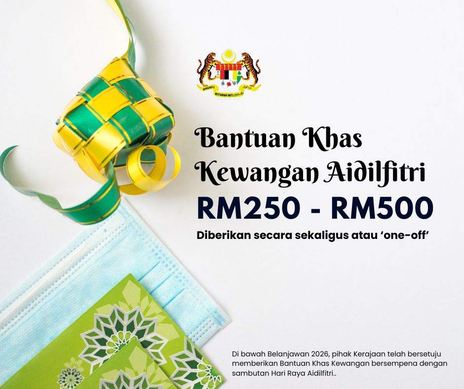 Di bawah Belanjawan 2026, pihak Kerajaan telah bersetuju memberikan Bantuan Khas Kewangan bersempena dengan sambutan Hari Raya Aidilfitri. Bantuan itu diberikan dengan kadar RM250 hingga RM500 secara sekaligus atau ‘one-off’.